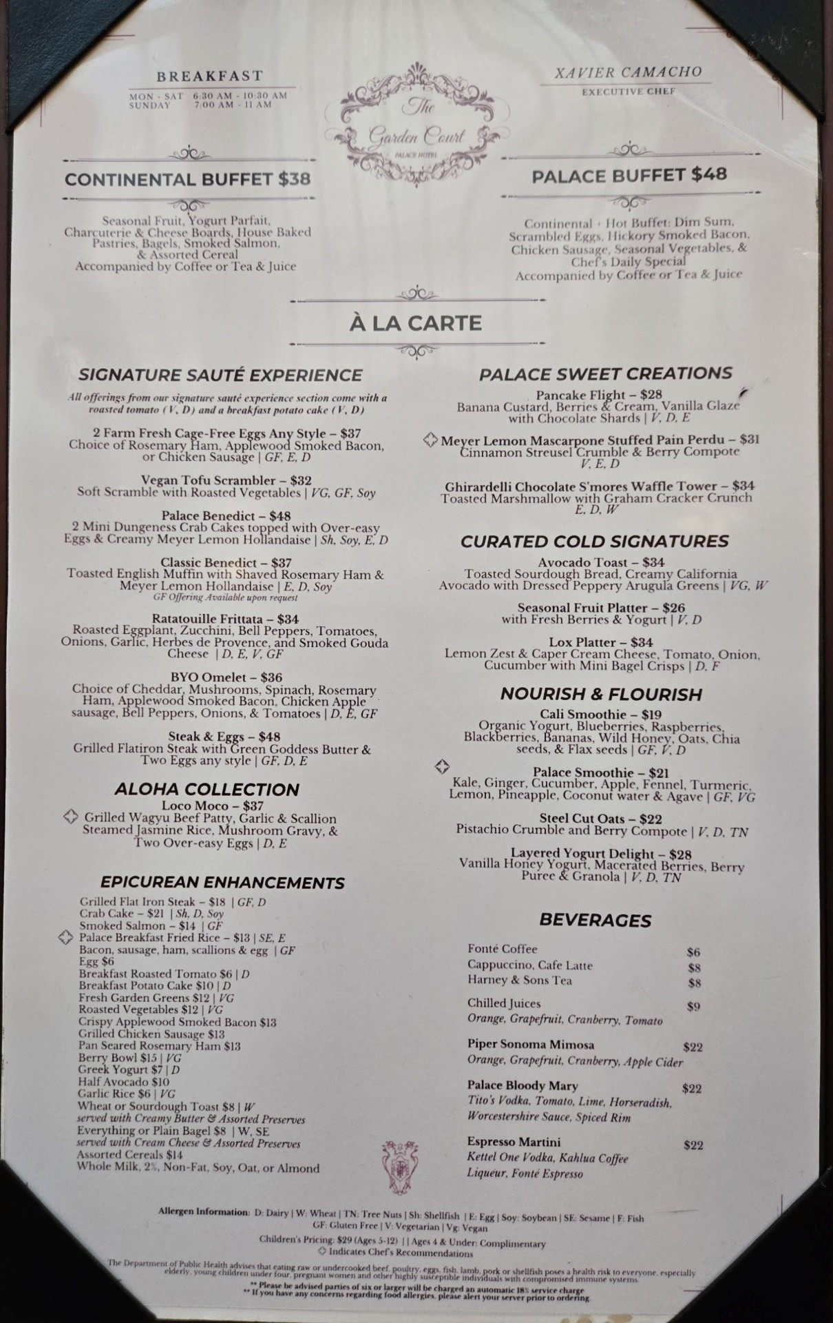 This large three-page menu was gifted to me by one of the staff. We didn't partake in this particular brunch seating, instead we did the 8:30am Grand Breakfast and the 4:00pm Grand Dinner, which had a similar menu for it.