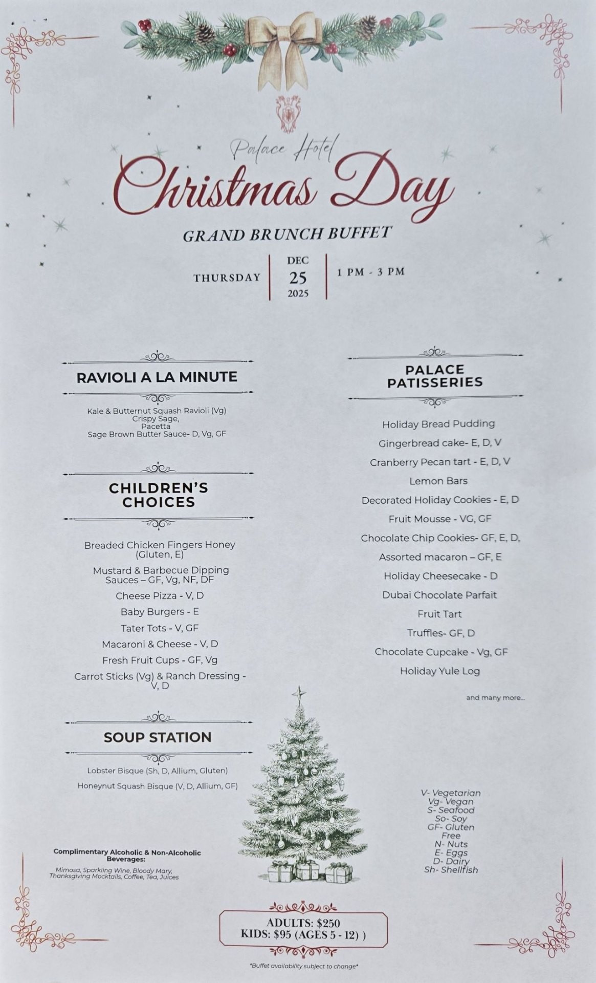 Christmas Day Grand Brunch Buffet in the Garden Court. December 25th, 2025.