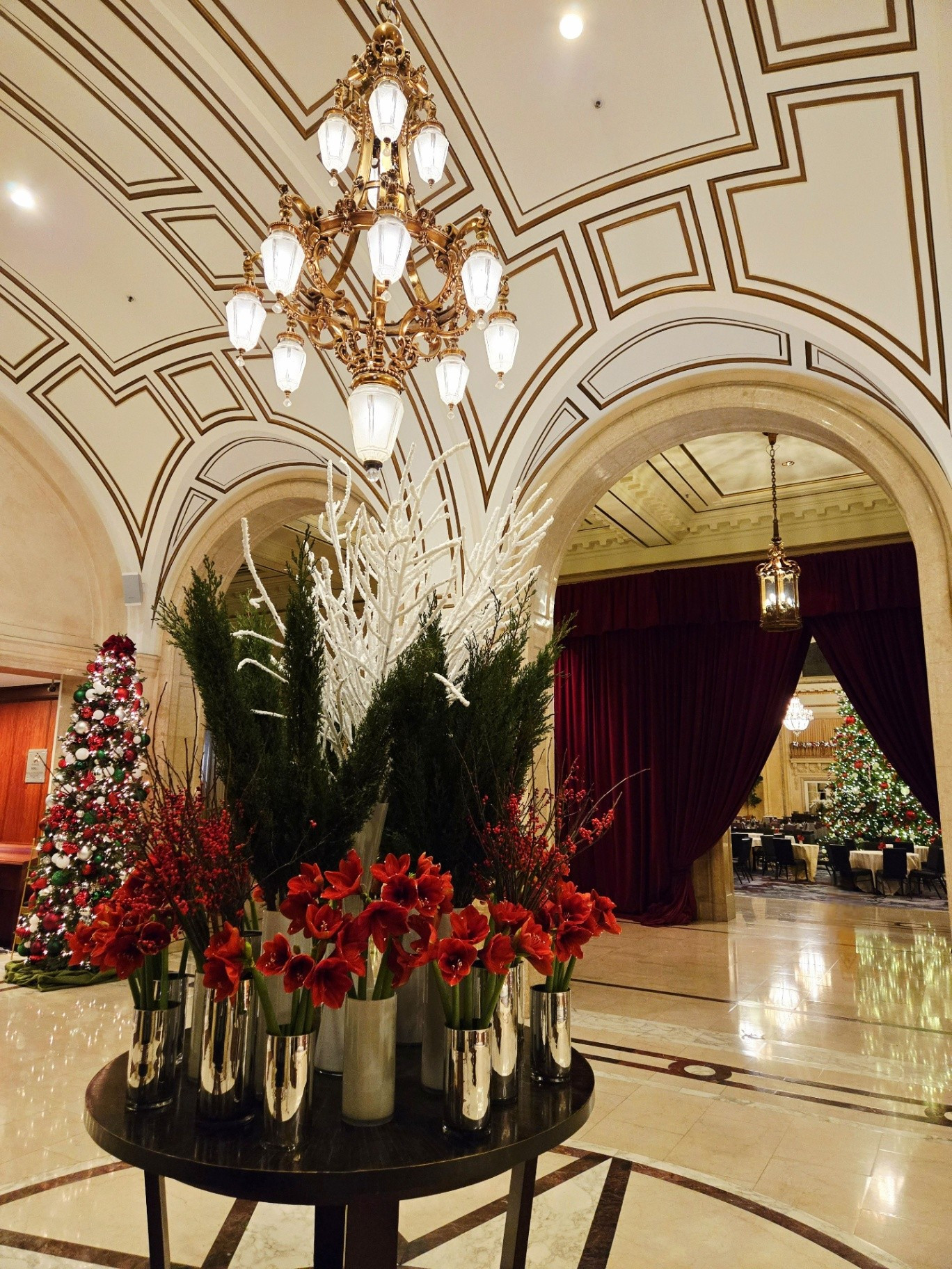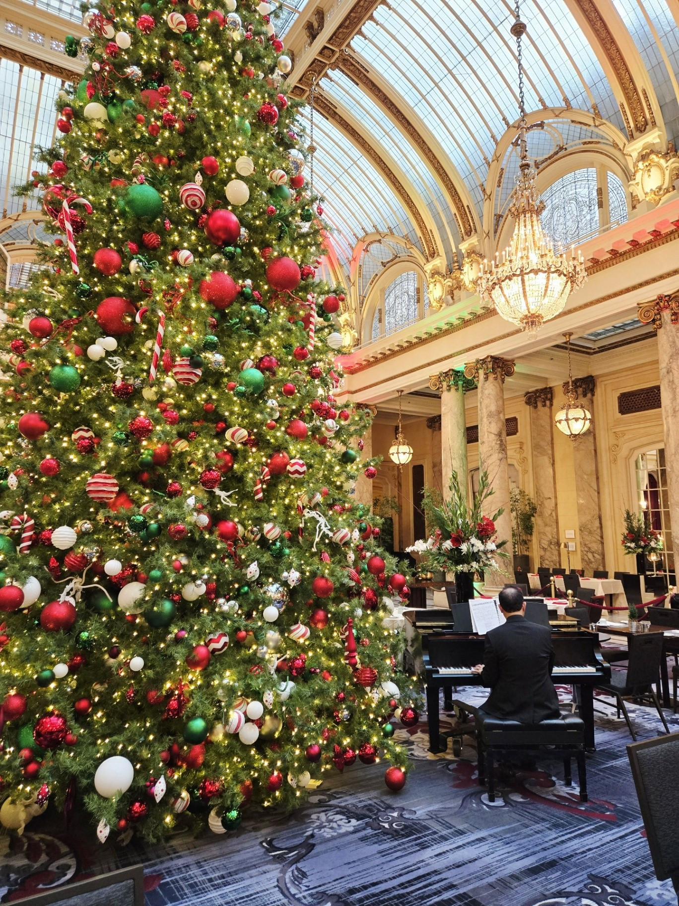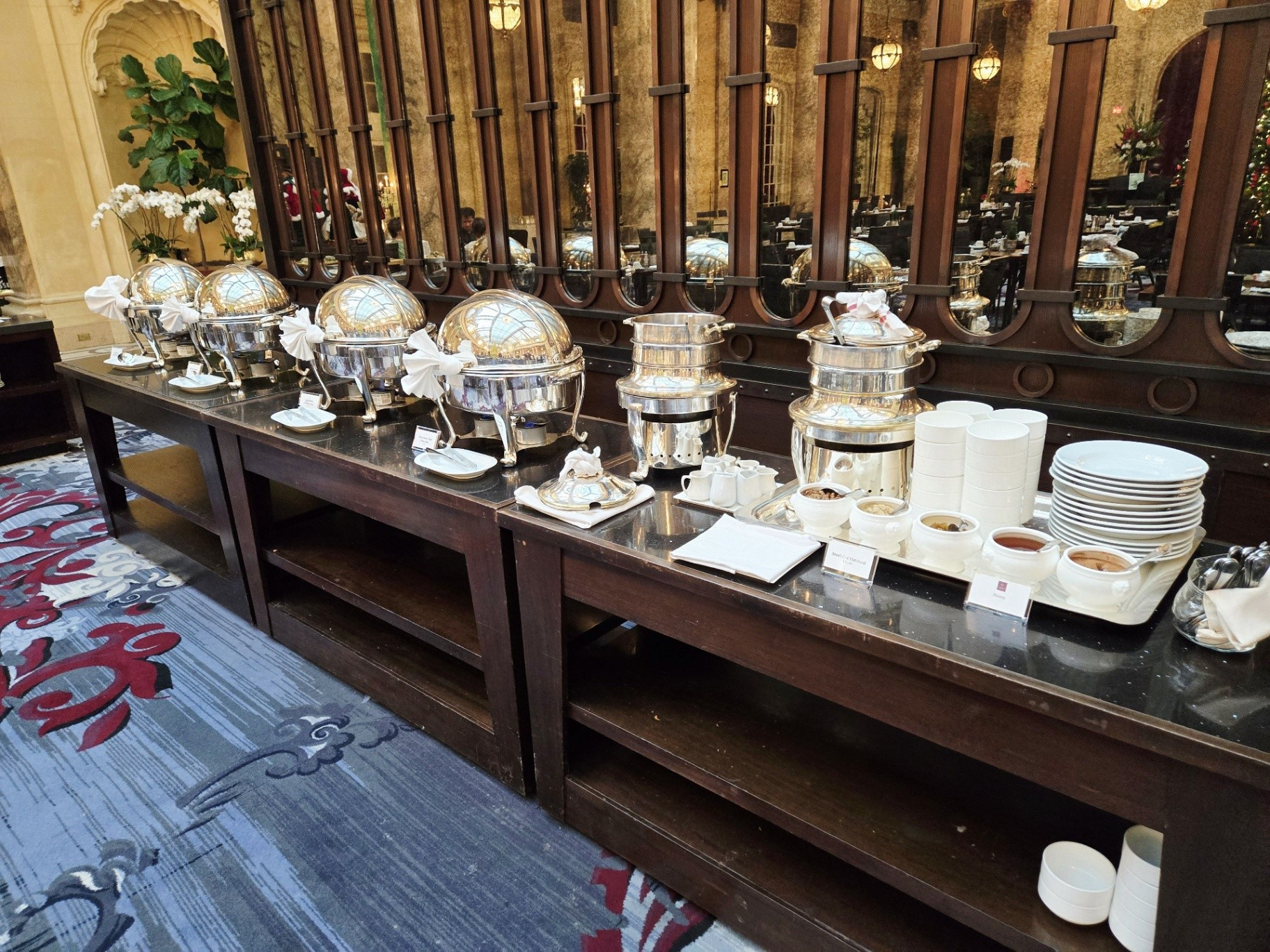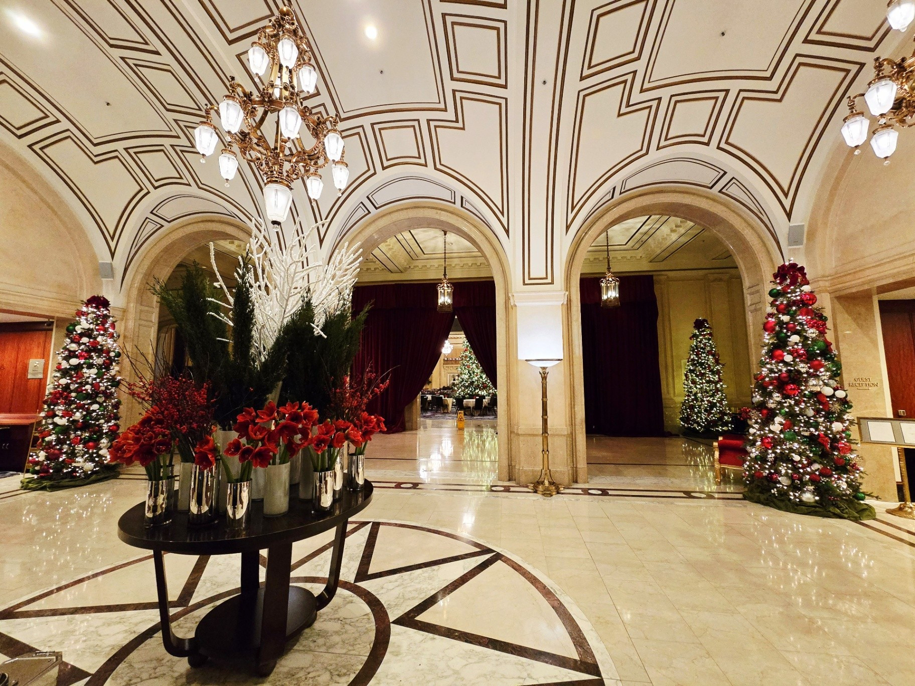 *During this visit, I photographed the lobby, main corridor, and Garden Court extensively. Owing to the numerous holiday events and weddings taking place, several spaces - including the Gold Ballroom, Rose Room, Ralston Room, and French Parlor - were in various stages of setup or breakdown, making them unsuitable for updated photography. The Pied Piper proved particularly challenging to photograph due to the constant flow of guests, as it remained one of the most popular dining venues throughout our stay.