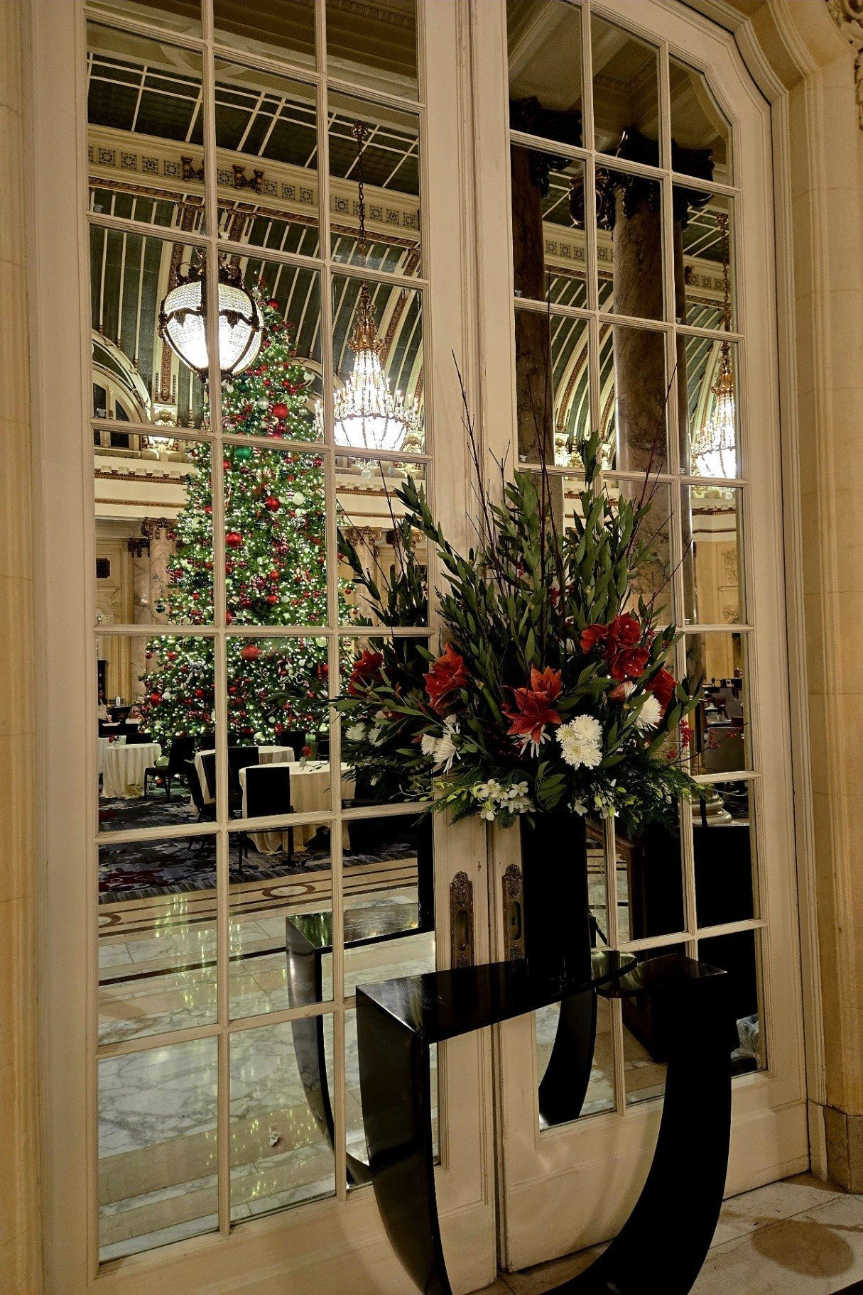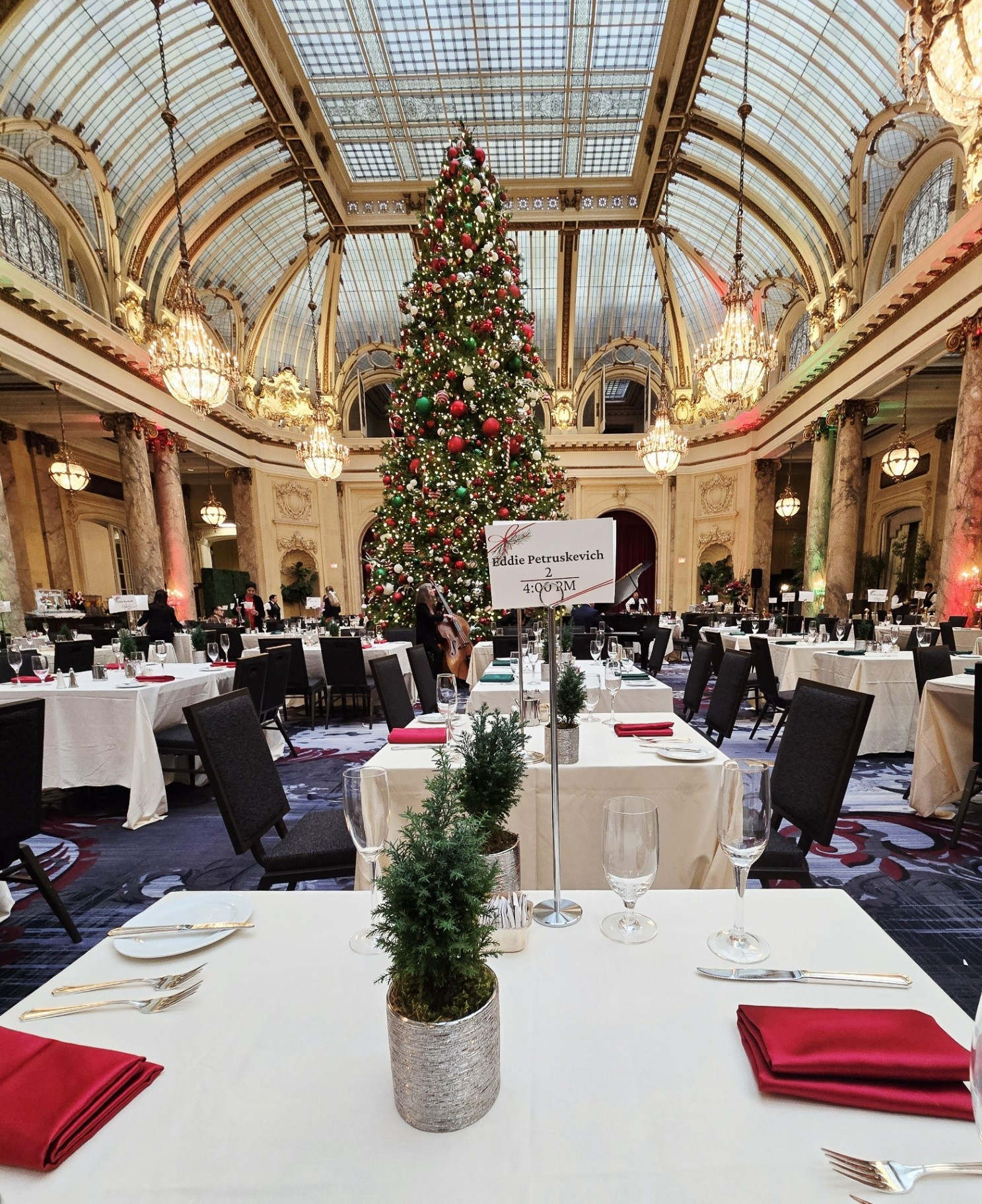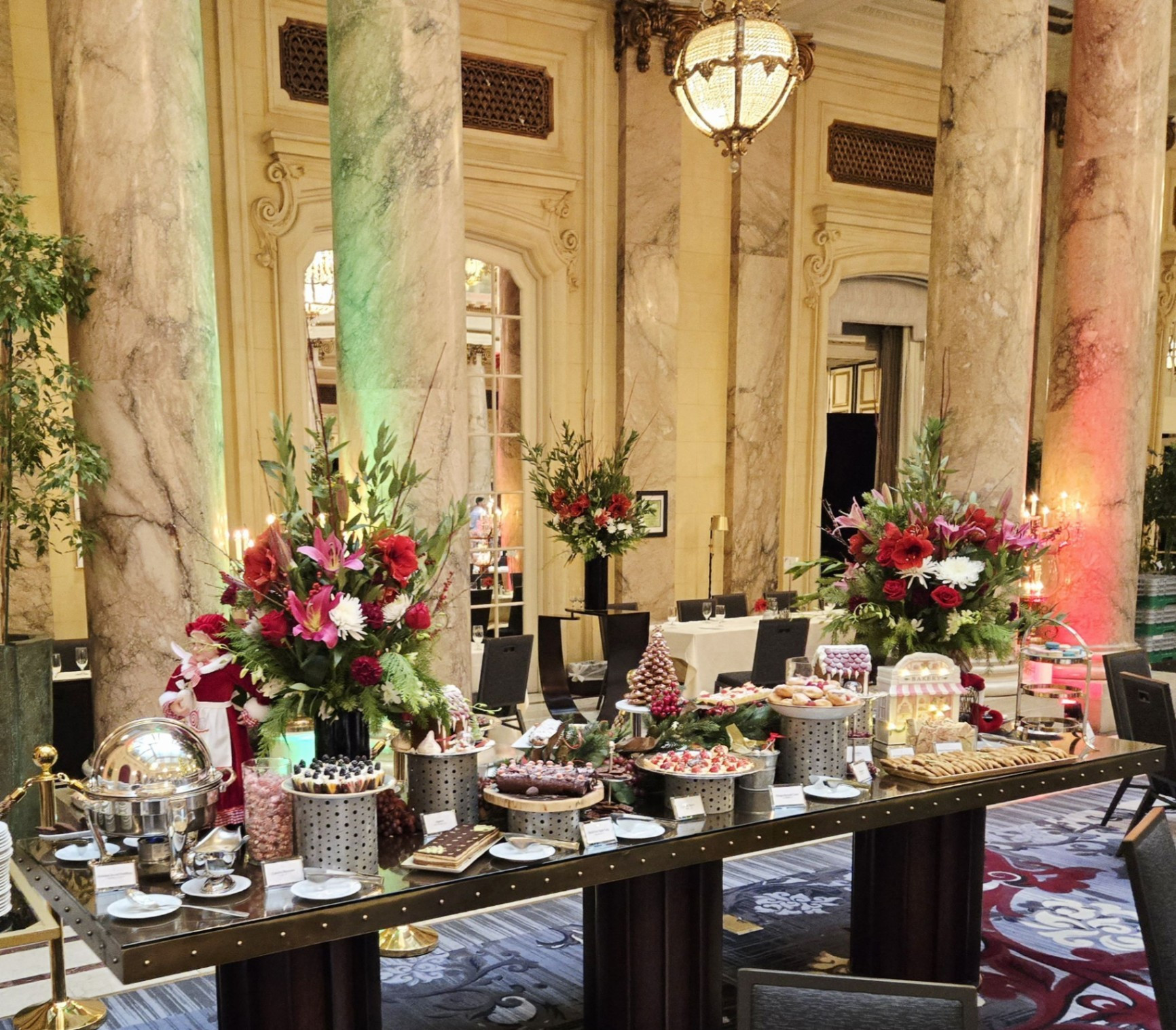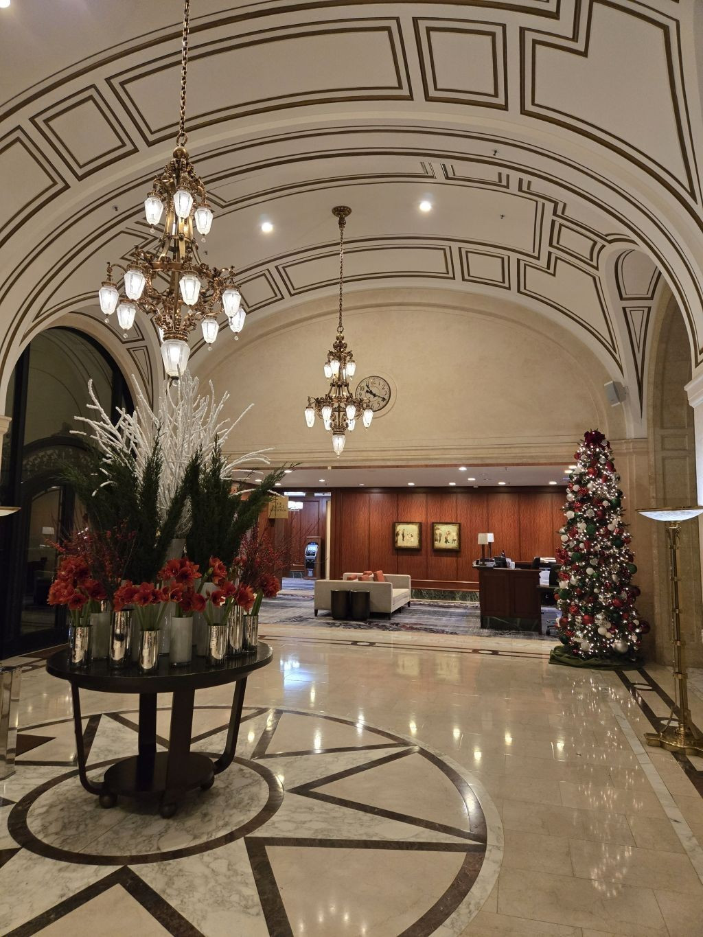 *During this visit, I photographed the lobby, main corridor, and Garden Court extensively. Owing to the numerous holiday events and weddings taking place, several spaces - including the Gold Ballroom, Rose Room, Ralston Room, and French Parlor - were in various stages of setup or breakdown, making them unsuitable for updated photography. The Pied Piper proved particularly challenging to photograph due to the constant flow of guests, as it remained one of the most popular dining venues throughout our stay.