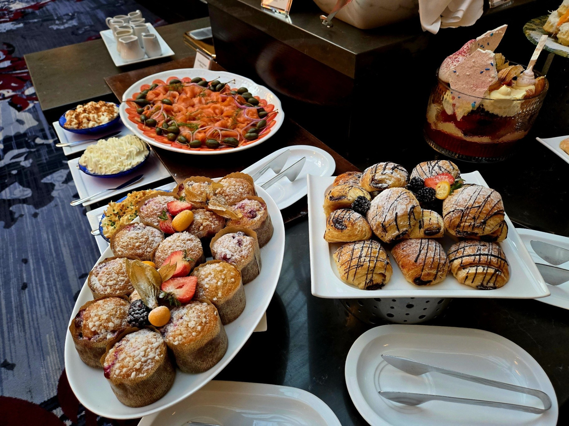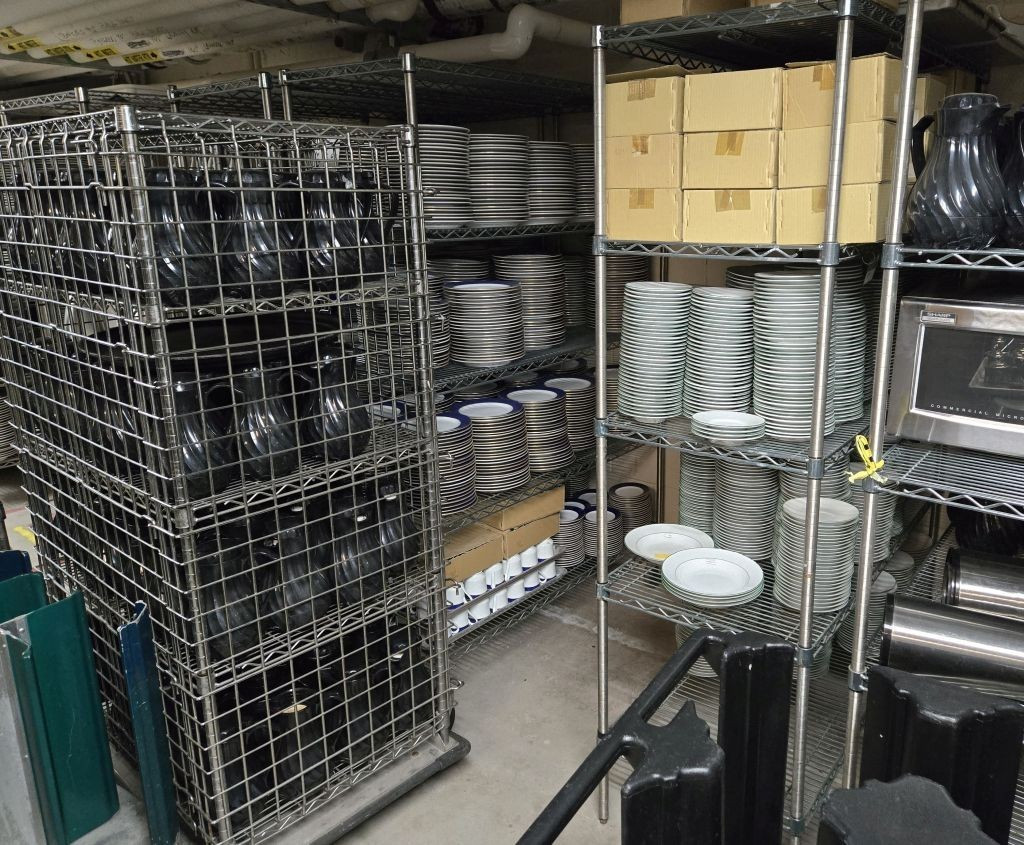 We then made our way through the kitchen and descended into the labyrinthine basement levels, where thousands of pieces of china, silver, and kitchen items are stored. I was particularly surprised by the quantity of china remaining from the Sheraton Palace era, as I had long assumed that most of it was sold off in 1989. In reality, much of this china remains in active use; in fact, several patterns had been pulled from storage just that week for Christmas service. I was able to photograph a number of previously undocumented patterns, which were discussed in the Sheraton Palace section of the artifact page.