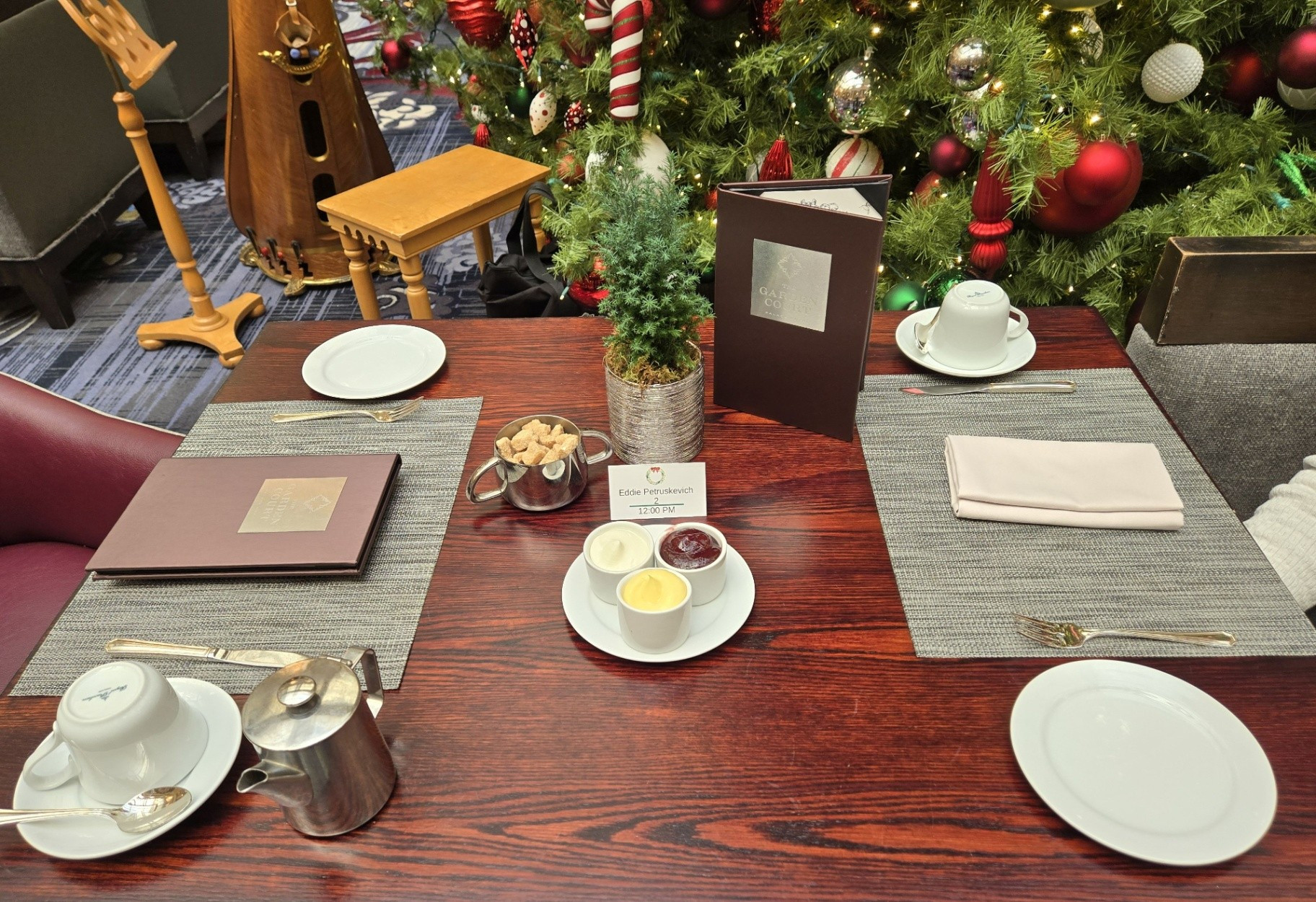 Garden Court & GC Lounge: These photos showcase the stunning ambiance and holiday decorations that only the Palace Hotel could pull off. These are just some of the photos I took during our stay and they are all in the following order: The general set-up for the Garden Court throughout the various meals and evenings (7), enjoying fine wine and taking photos in the evenings (6), our morning breakfasts (3), Christmas Day breakfast (6), Christmas Day Grand Dinner (17), and the Holiday Tea Service (5). Menus saved or photographed from these meals can be seen under the Menus page.